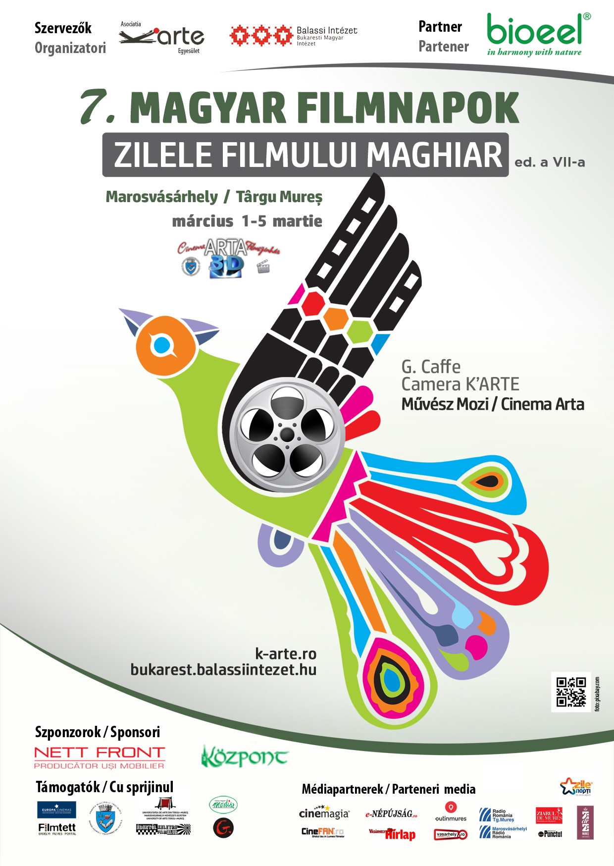 A şaptea ediţie a Zilelor Filmului Maghiar la Târgu Mureş va avea loc între 1-5 martie la Cinema Arta, G Caffe şi Camera K’ARTE. Proiectul este organizat de Asociaţia K’ARTE din Tg. Mureş şi Institutul Balassi – Institutul Maghiar din Bucureşti, în parteneriat cu Bioeel.